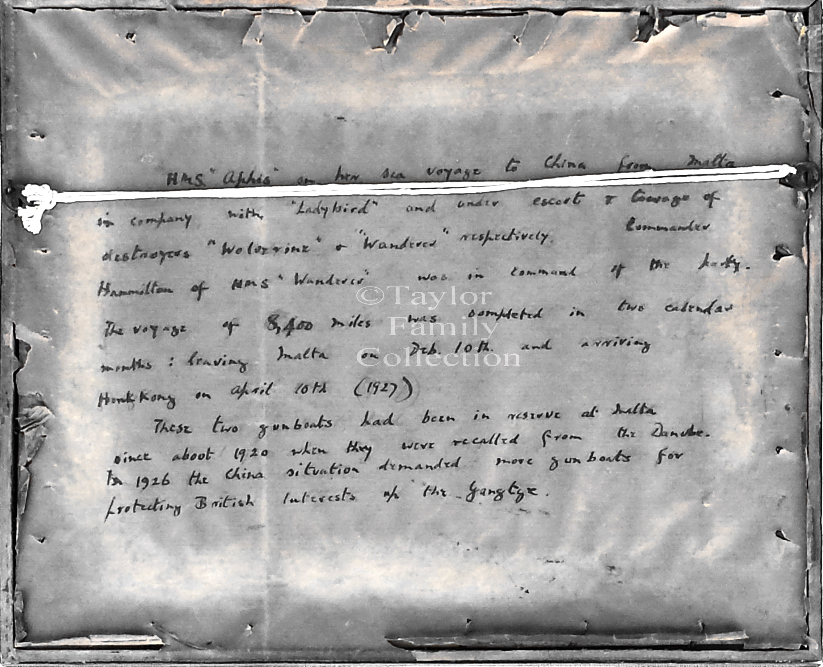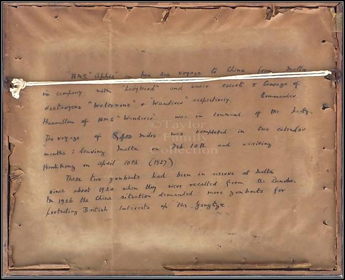In 1927 HMS Aphis voyaged to the China Station where she remained until World War 2.
