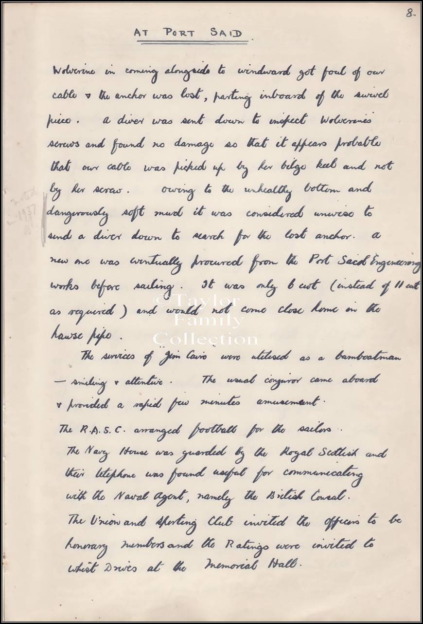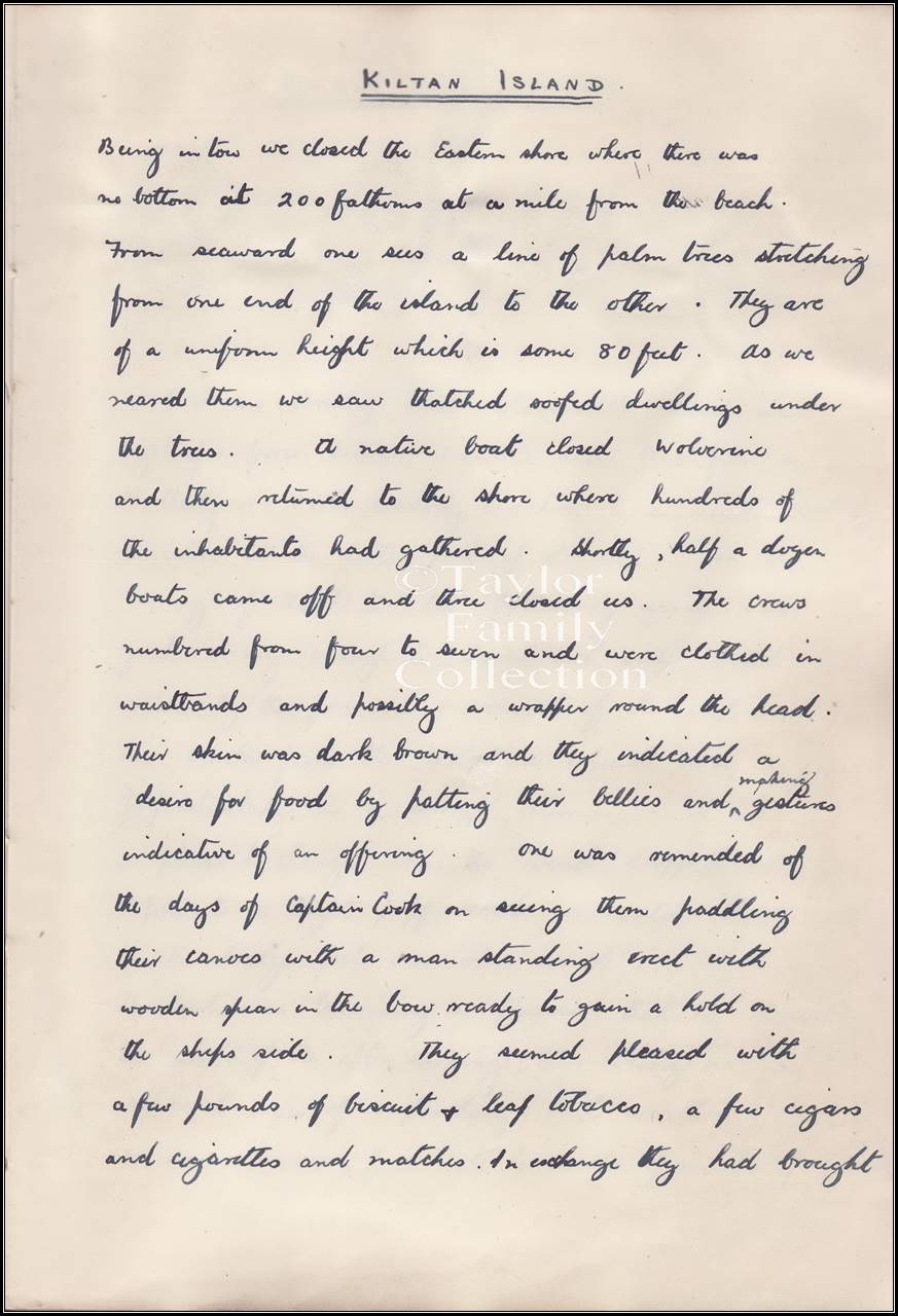 The following is a handwritten account of this voyage by Lieutenant Commander J. K. B. Stephenson complete with photographs.
