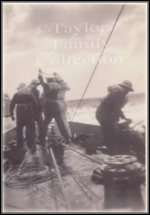 Clearing a fouled tow-line. Note the life-vests. Click to enlarge.