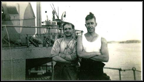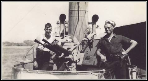 until April 1945 then Service Record The photos below are aboard the Northern Chief (Armed Trawler) 1942 – 1943 Walter (left) standing behind anti-aircraft gun Walter (Right) with royal ensign flying proudly Walter (Right) and shipmate Colin is the