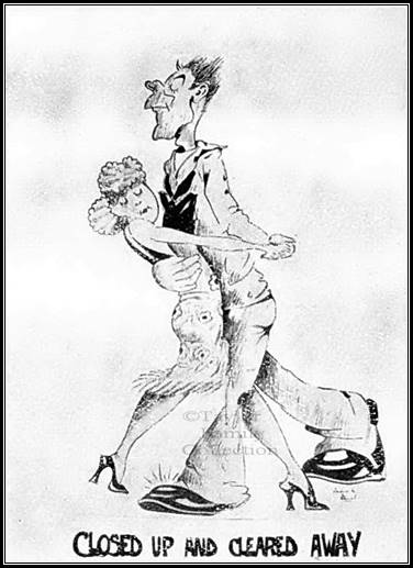 Now was their chance. What a charge they made! No wallflowers now, all were eager for the fray! Crash! goes the orchestra, piano and drum together! Ladies go one way and gentlemen the other. The music stops, and the faces, which have been glum up till now, light up with hope as the jockeying for the favourite partners takes place and one by one the willing but doubtful starters are eliminated. They begin to drift back to the paddock and the dance goes on but up they get again for the next round only to be disappointed a second time!