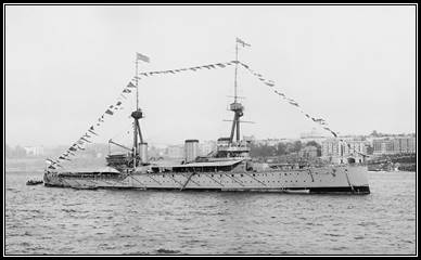 Ashore, the ‘Green Shutters’ and ‘Tokio Bar’ will not easily forget the English sailors, who not only passed on to them all the up-to-date English tunes but supplied an occasional favourite, such as “Cantando,” - words and music. On Christmas night, it was estimated that 150 men consecutively groped their way up the gangway, the two places are named above to give them the credit for the convivial hours spent ashore. It was a sight for sore eyes and in the circumstances most cheering, particularly as one marine, when asked why he would persist in standing on one leg replied, “Oh, I'm a teapot. Pour me out, somebody.”