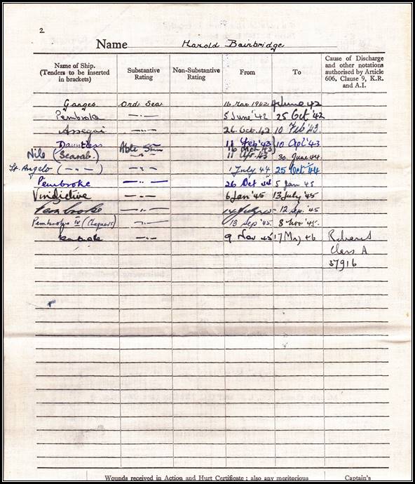 Harold served on HMS Dauntless with my Dad Frank (Buck) Taylor and both were transferred to HMS Scarab on the same date - 11 April 1943. They served 18 months as shipmates. Our sincere thanks to Fred and his Father Harold.
