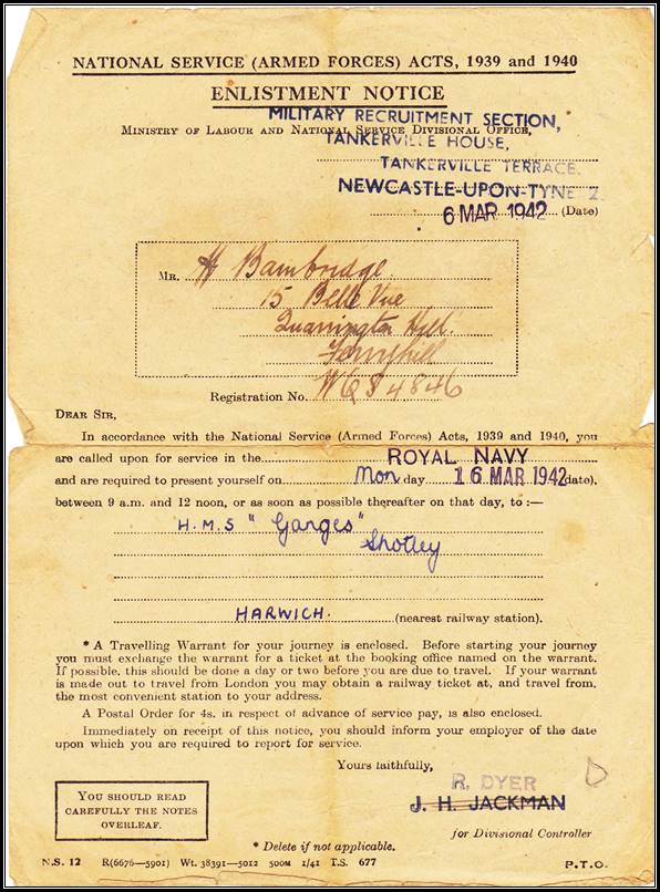 Harold’s Enlistment Notice 6 Mar 1942