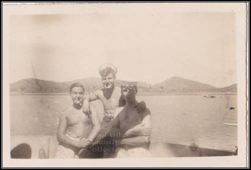Thought to be aboard HMS Scarab 1943-44 (Note Flying Boats in background)