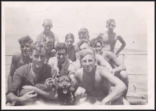 Scarab crew members - Suez 1943 Back row Harold Bainbridge (left) Ernie 'Blondie' Thomas second from right