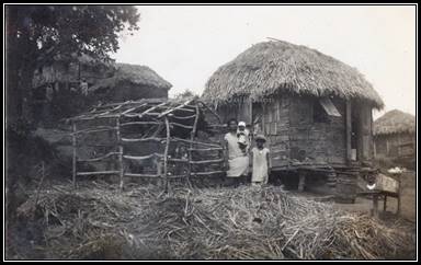 We spent five days here, during which we had a Church Parade, the Concert Party gave a show, the band played and the cricket team lost a match on the most astonishing ‘ground’ in the middle of the jungle. It was fortunate that nearly all the inhabitants attended this match, for they were frequently needed to retrieve the ball from the dark forest.