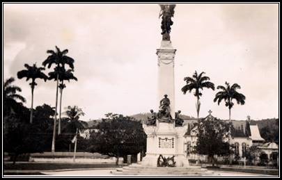 When half way along the path, we espied in front of us a blaze of many colours, which resolved itself into the frocks and hats of the youth and beauty of Santa Marta, collected at the spot where we knew Captain Vivian had to turn to the right to find Simon Bolivar’s statue facing him. All went well (we hoped we greeted the ladies with suitable smiles) and then the Captain turned to the right, and some twenty yards ahead of him was the statue surrounded by railing, through which he must pass. But on arrival it was found to be padlocked. Whispered questions elicited the terrifying news that the key was lost. We knew that the Captain was evaluating the situation.