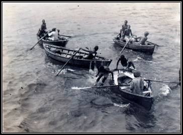 A certain amount of amusement was obtained from watching the natives dive and scrap for coppers thrown to them from the ship.