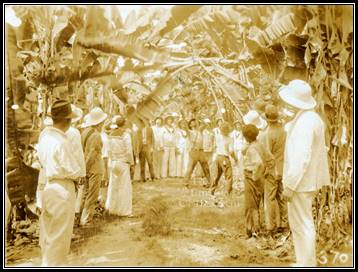 After a grand lunch, plus a bottle of iced beer, the return journey was commenced. The party arrived onboard at 1830, tired but happy, after the interesting and instructive day provided by the officials of the United Fruit Company.