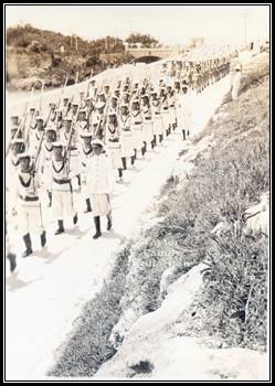 On Sunday 22nd February, a Guard and Band landed and marched to the Santa Marta Barracks, where Captain Vivian, Commander Bruce and Commander (E) Grethed were presented with the Order of Simon Bolivar, a memorial medal to commemorate the centenary of the death of the Great Liberator. In addition to the detachment from the ship there was present a Guard and Band of a Volunteer Regiment. Captain Vivian and Colonel Tomayo inspected the guards, who then marched past. The Colonel congratulated the Captain on the smartness of his men and also presented Lieutenant Bond, who was in charge of the ship’s detachment, with the Order.