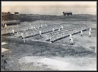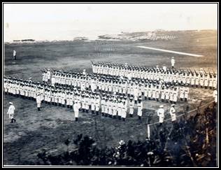 Our detachment of Royal Marines left the ship for a fortnight under canvas at Warwick Camp in company with the other detachments of the squadron. Small Arms training was carried out. A field practice with ball ammunition, demonstrating a company in attack, was staged by the Royal Marines of H.M.S. Dauntless and H.M.S. Danae and was witnessed by a large gathering of Naval Officers, who were greatly impressed. Such demonstrations are invaluable to Naval Officers.