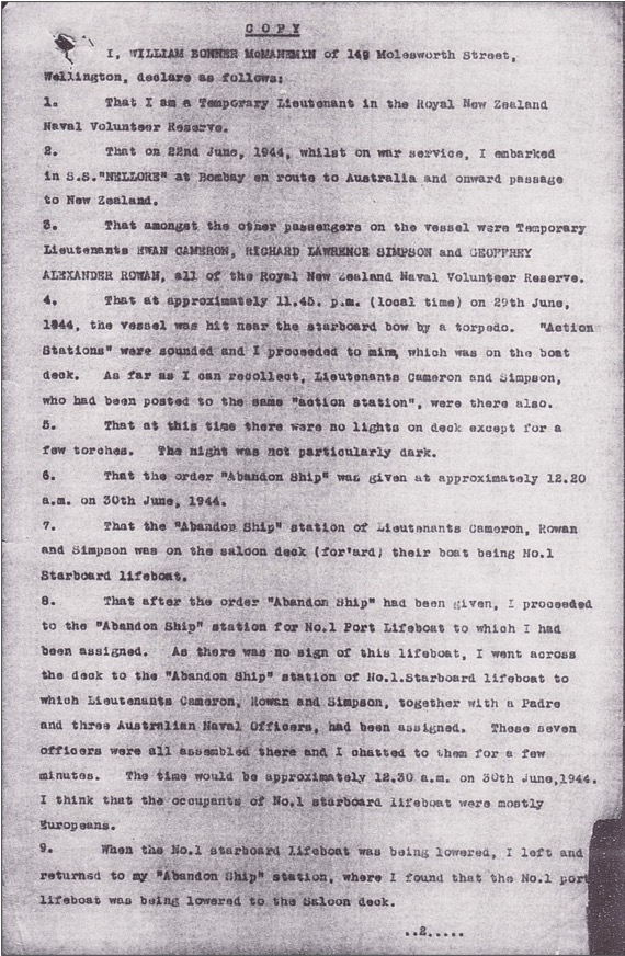 The letter from the NZ Naval Affairs Officer to The Secretary, C.W. Branch (Cas), Admiralty and dated 14 March 1946 states that: “The above, together with reports made by the Chief Officer and 3rd Engineer of the ss ‘Nellore’ (Copies are no doubt held by the Lords Commissioners) have been carefully perused by the Naval Secretary, and these are the conclusions…”